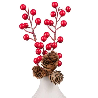 Featuring plump red berries and a pine cone arrangement, this vase is ideal for freshening up living rooms.