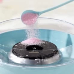 With one button operation, use the included measuring spoon to add coloured candyfloss sugar into the sugar inlet and collect using the wooden candy sticks.